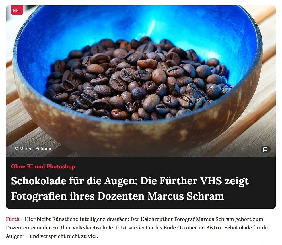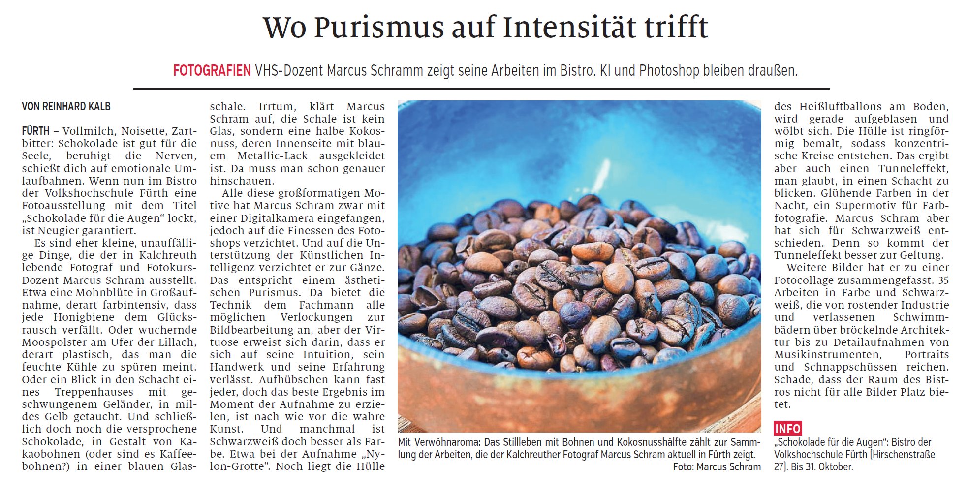 Zeitungsartikel zur Fotoausstellung 'Schokolade für die Augen' von Marcus Schram |